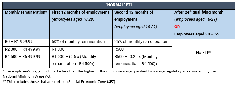 Thus far, two periods of Additional ETI have been implemented by SARS, being 1 April to 31 July 2020 and 1 August to 30 November 2021.